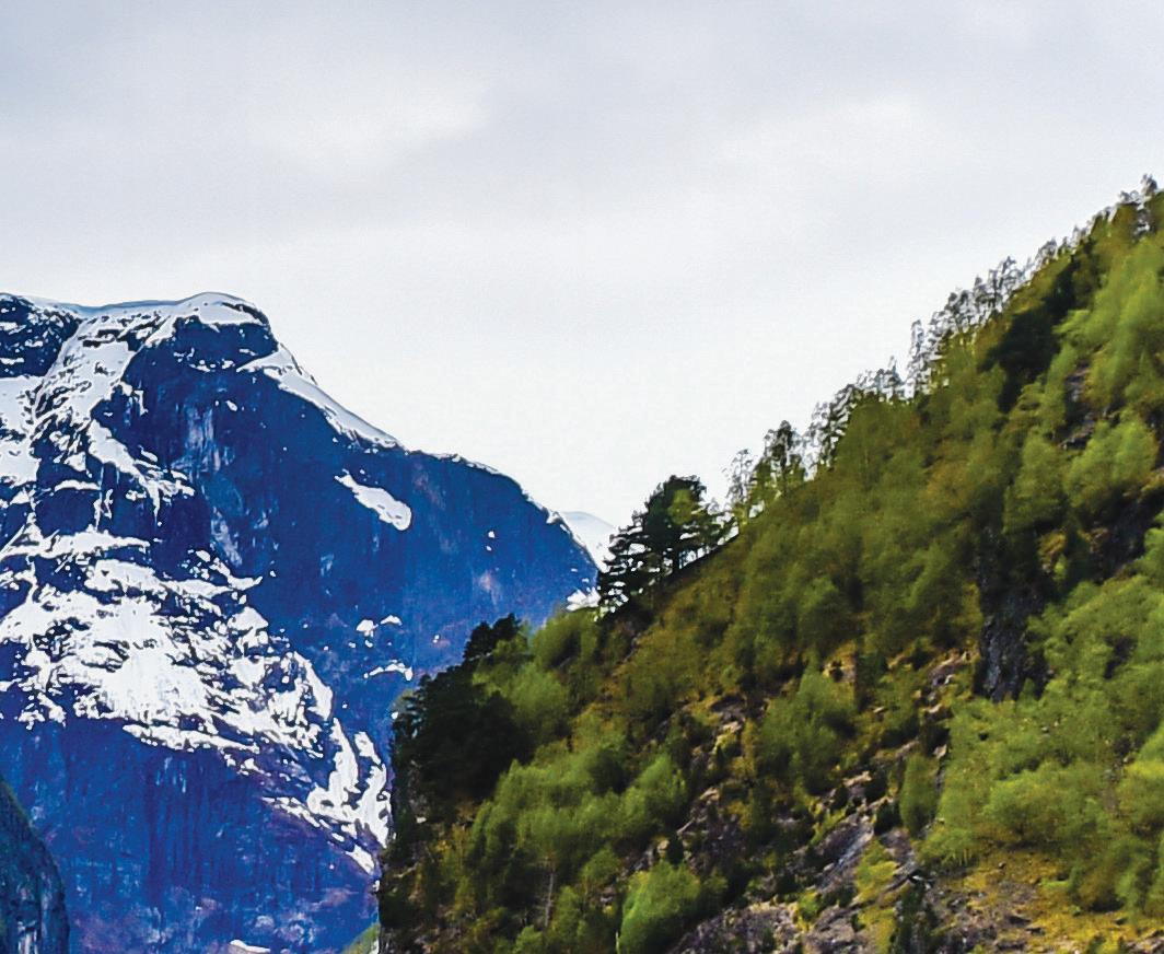 Tailored by You: Be wowed as you glide through the UNESCO-listed Nærøyfjord. This fjord is a live-action painting with its waterfalls, snow-draped peaks, and quaint villages. Choice Experience on Highlights of Scandinavia (p. 55).