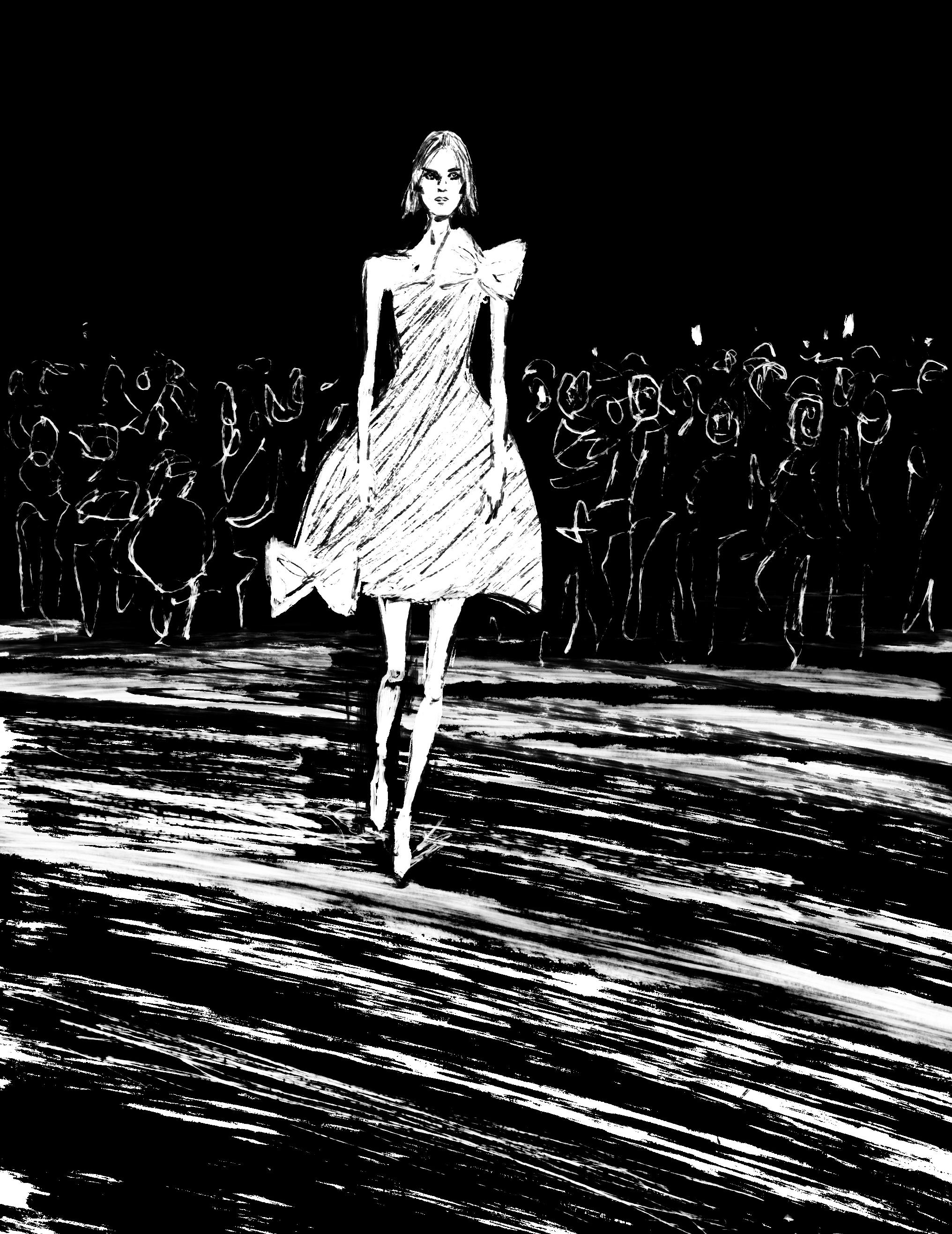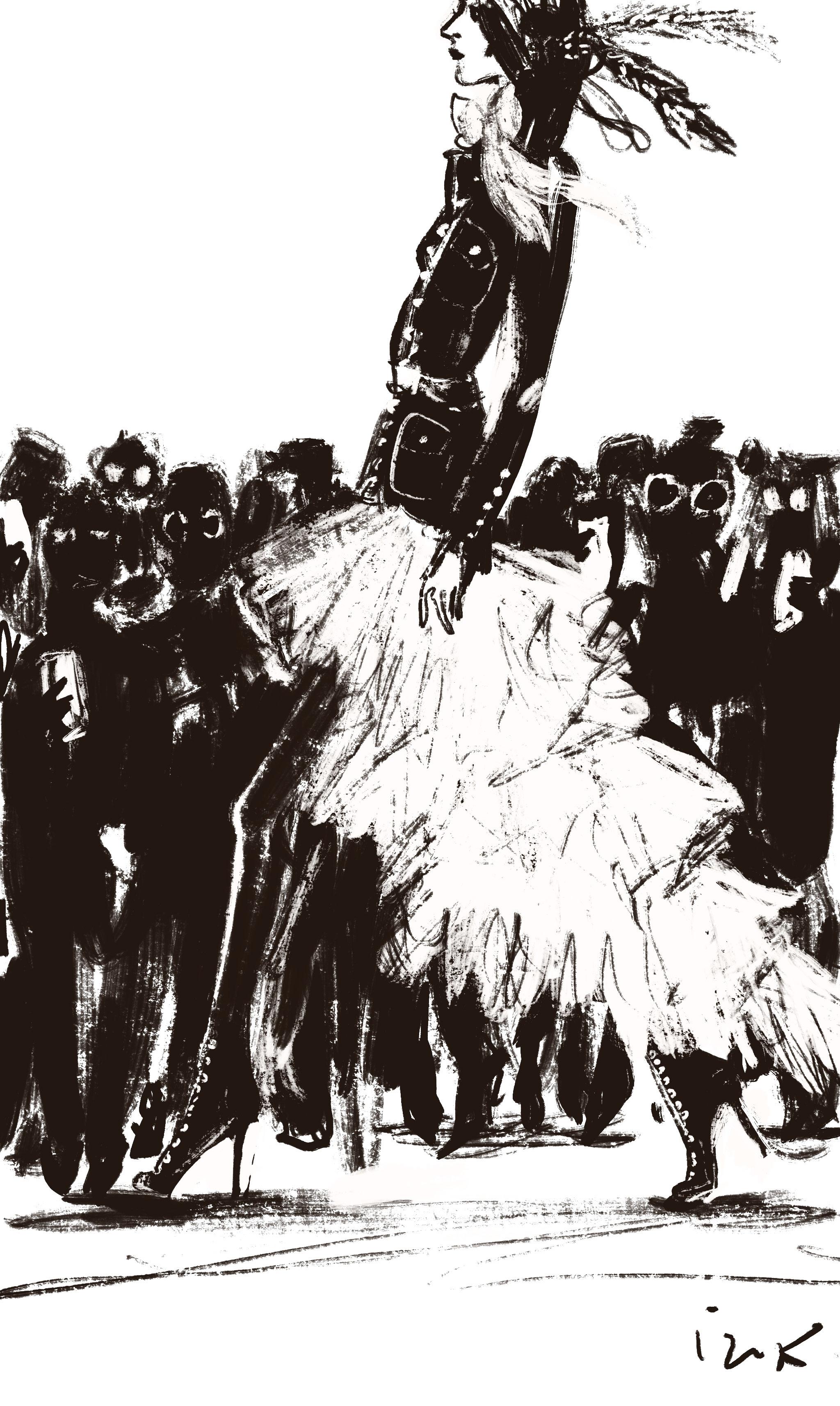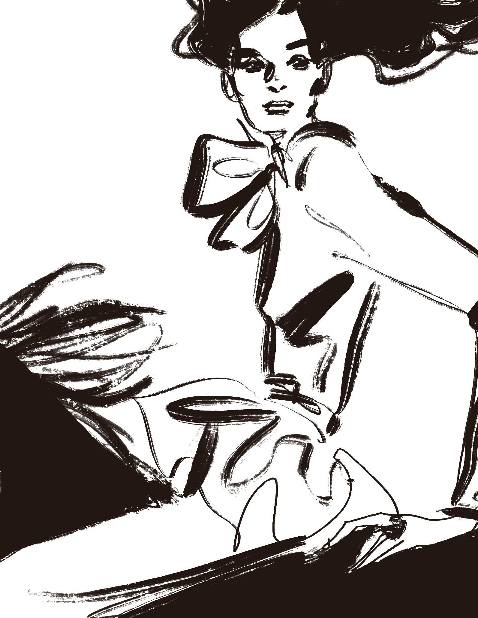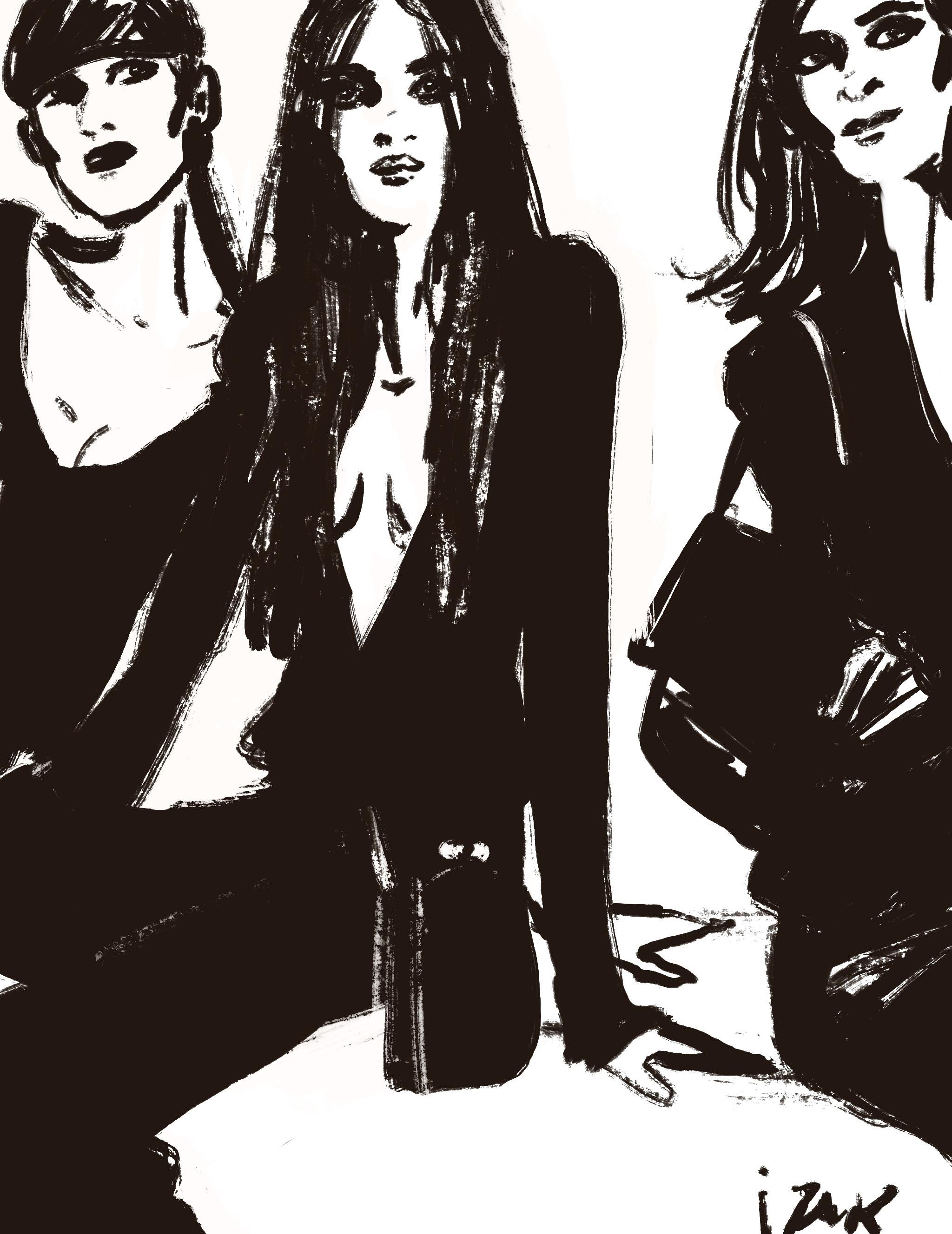 Every fashion insider has a little black book—a place where secrets, muses, and inspiration live. For Izak Zenou, it’s literal. Known for his effortless glamour and signature wit, Izak returns to the purity of black and white—his India ink lines now dancing between paper and iPad, tradition and technology.