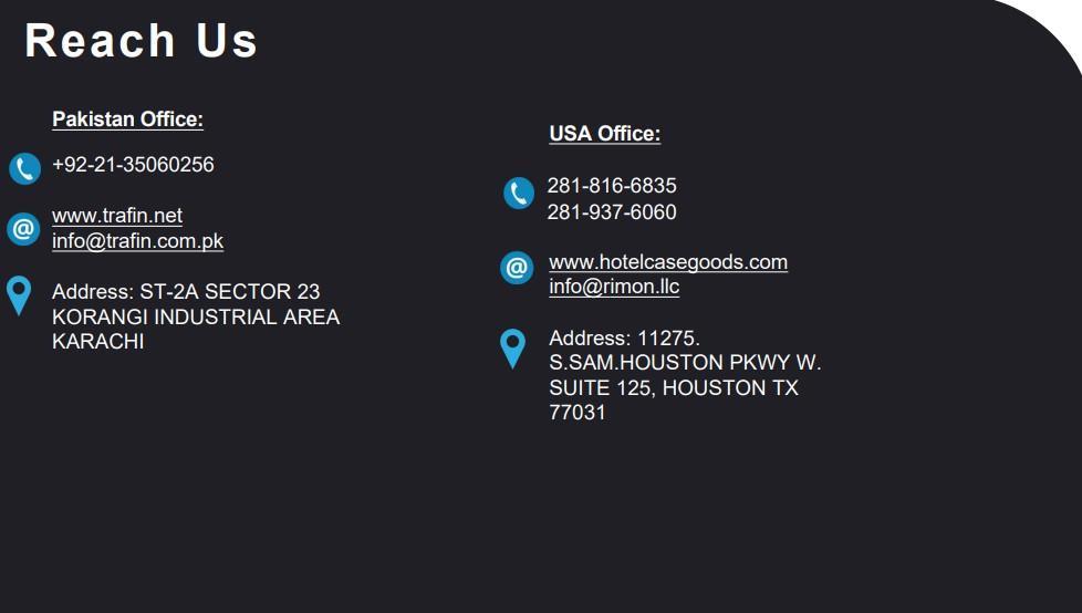 At Trafin (Pvt) Limited, we specialize in end-to-end furniture solutions, from initial design through to final delivery. Our services include custom design, prototyping, and manufacturing, ensuring each piece meets the exact specifications and style of our clients. With advanced CAD visualizations and meticulous craftsmanship, we bring unique concepts to life for a range of environments, including offices, hotels, and residential spaces. Our commitment to quality and attention to detail make us a trusted partner, delivering furniture that combines durability, functionality, and aesthetic appeal.