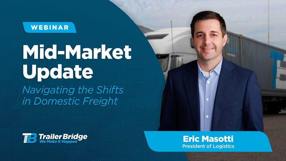 In our latest webinar, Trailer Bridge President of Logistics Eric Masotti breaks down today’s freight environment with a no-nonsense mid-year market update. With over 20 years of experience navigating the industry’s ups and downs, Eric shares timely insights to help you make confident, informed decisions to support your customers and prospects.