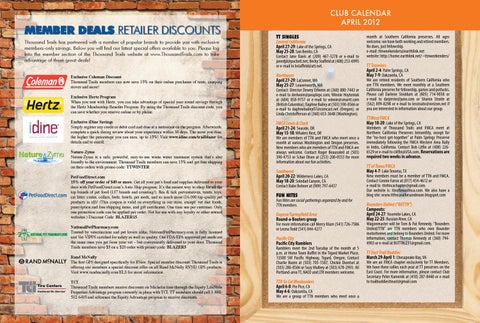 MEMBER DEALS RETAILER DISCOUNTS Thousand Trails has partnered with a number of popular brands to provide you with exclusive members-only savings. Below you will find our latest special offers available to you. Please log into the member section of the Thousand Trails website at www.ThousandTrails.com to take advantage of these great deals! Exclusive Coleman Discount Thousand Trails members can now save 15% on their online purchases of tents, camping stoves and more! Exclusive Hertz Program When you rent with Hertz, you can take advantage of special year-round savings through the Hertz Membership Benefits Program. By using the Thousand Trails discount code, you can save whether you reserve online or by phone. Exclusive iDine Savings Simply register any credit or debit card and dine at a restaurant on the program. Afterwards, complete a quick dining review about your experience within 30 days. The more you dine, the higher the percentage you can earn, up to 15%! Visit www.idine.com/trailblazer for details and to enroll. Nature-Zyme Nature-Zyme is a safe, powerful, easy-to-use waste water treatment system that’s also friendly to the environment. Thousand Trails members can save 15% and get free shipping on their orders with promo code: TTWINTER PetFoodDirect.com 15% off your order of $49 or more. Get all your pet’s food and supplies delivered to your door with PetFoodDirect.com’s Auto Ship program. It’s the easiest way to shop for all the top brands of pet food (137 brands and counting!), flea & tick preventatives, treats, toys, cat litter, crates, collars, beds, bowls, pet meds, and so much more (16,000 top-quality pet products in all)! (This coupon is valid on everything in our store, except: vet diet foods, prescription and free shipping items, and gift certificates. One time use per customer. Only one promotion code can be applied per order. Not for use with any loyalty or other reward websites.) Discount Code: BLAZER15 NationalPetPharmacy.com Trusted by veterinarians and pet lovers alike, NationalPetPharmacy.com is fully licensed and Vet-VIPPS certified for safety as well as quality. Our FDA/EPA approved pet meds are the same ones you get from your vet – but conveniently delivered to your door. Thousand Trails members save $5 on a $20 order with promo code: BLAZER5