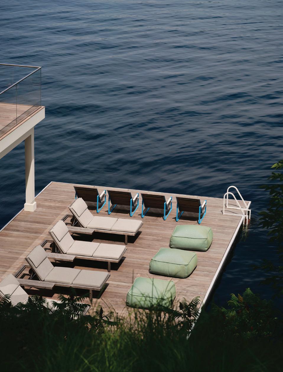 à double hauteur reliant le paysage marin et l’accueil des visiteurs. En termes de forme, de couleur et de matérialité, le défi visait à obtenir un effet d’intégration non seulement au bâti existant mais au paysage à la beauté saisissante. Pedra Silva Arquitectos y est parvenu par le biais de choix assumés : supprimer quelques toits en pente, ouvrir les balcons, appliquer des lames de bois verticales et des panneaux métalliques sur les façades, clarifiant ainsi les formes et les volumes. La couleur et la texture ont joué un rôle crucial dans le concept architectural en mettant en valeur les deux facettes de l’hôtel qui naviguent entre tradition et modernité. Nathalie Truche www.pedrasilva.com, www.aethos.com