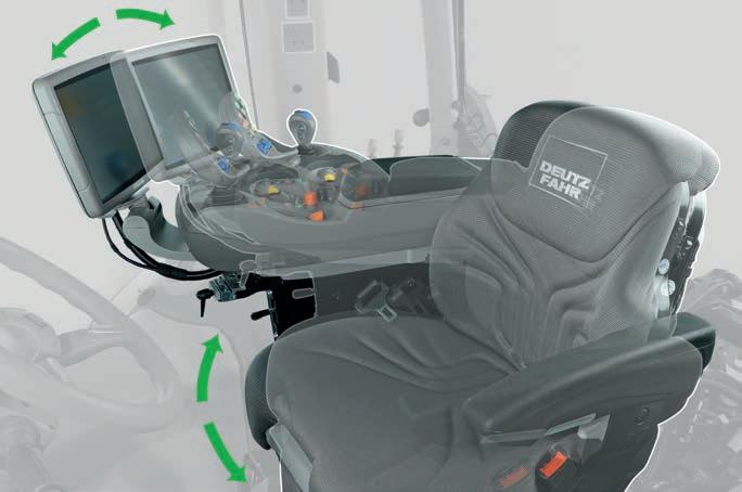 sition. The control elements for hydraulic control valves, engine control, transmission control, PTO activation and drivetrain management are also integrated into the armrest.