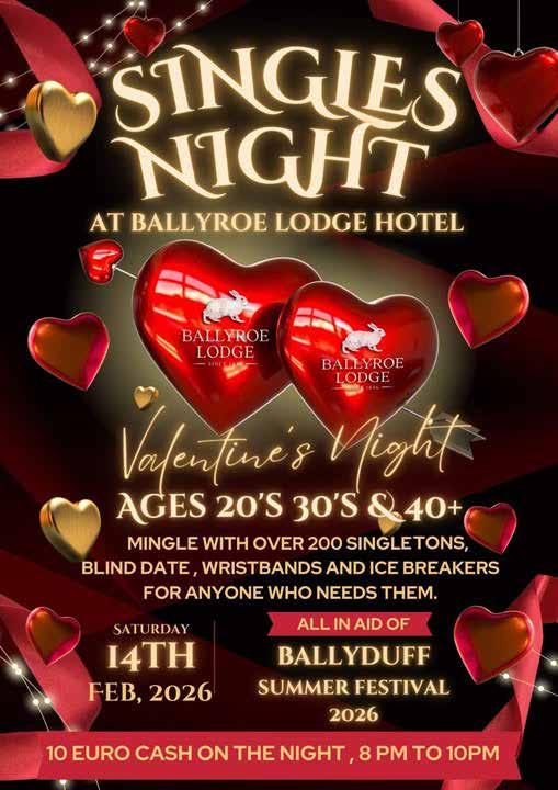 Thanks to Louis Byrne (Spar Oakpark) for Re-Turn recycling support. Club Social: 28th February, Meadowlands Hotel. €60 (3-course meal & music).