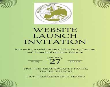 Kerry Camino would like to invite you (or your representative) to a celebration of the Kerry Camino and launch of our website on Friday 27th February. It will take place at the Meadowlands Hotel, Tralee at 6pm. Invitation attached. Their annual Guided Walk Weekend will take place on the May Bank Holiday weekend - Friday 1st to Sunday 3rd May 2026....look forward to meeting you. on Friday the 27th