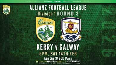 Kerry v Galway (14th Feb). Kerry hurlers away to Laois (21st Feb). Ladies: win v Meath, next v Cork (22nd).