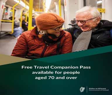 The Free Travel Scheme currently serves over 1.1 million people, rising to 1.9 million when including companion and spousal passes. For more details, visit www.Gov.ie/ FreeTravel.