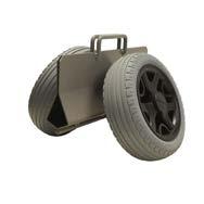 2 stk. 400 mm luftgummihjul eller 2 stk. 400 mm punkteringsfrie hjul 1 stk. svingbart 200 mm hjul med brems