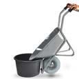 • Solid trillebår med kar produsert i polyetylen 2 punkteringsfrie hjul med stålfelg og med 2 innelukkede kulelager