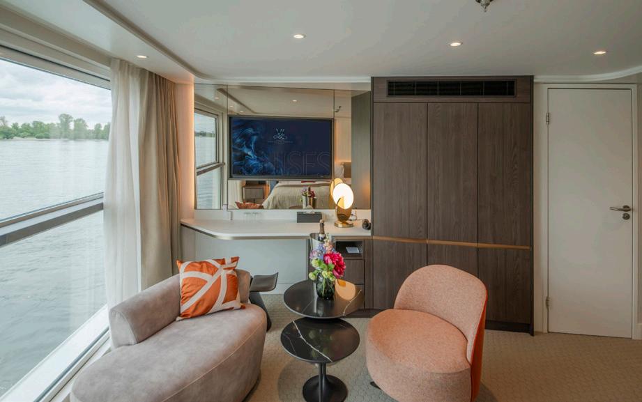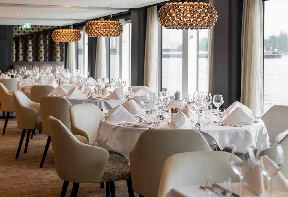 When you board The Gentleman, you’ll quickly realize this is an incomparable river cruise. Designed in an elegant and sophisticated style, the tasteful décor, refined surfaces, and premium fabrics create an atmosphere of comfort. Attire on board is relaxed and casual, allowing you to unwind completely. Throughout your journey, our attentive shipboard family will be dedicated to catering to your every need, ensuring an unforgettable experience.