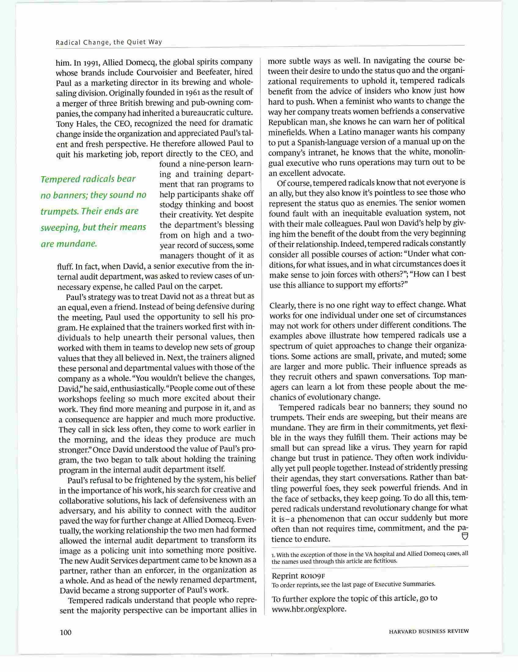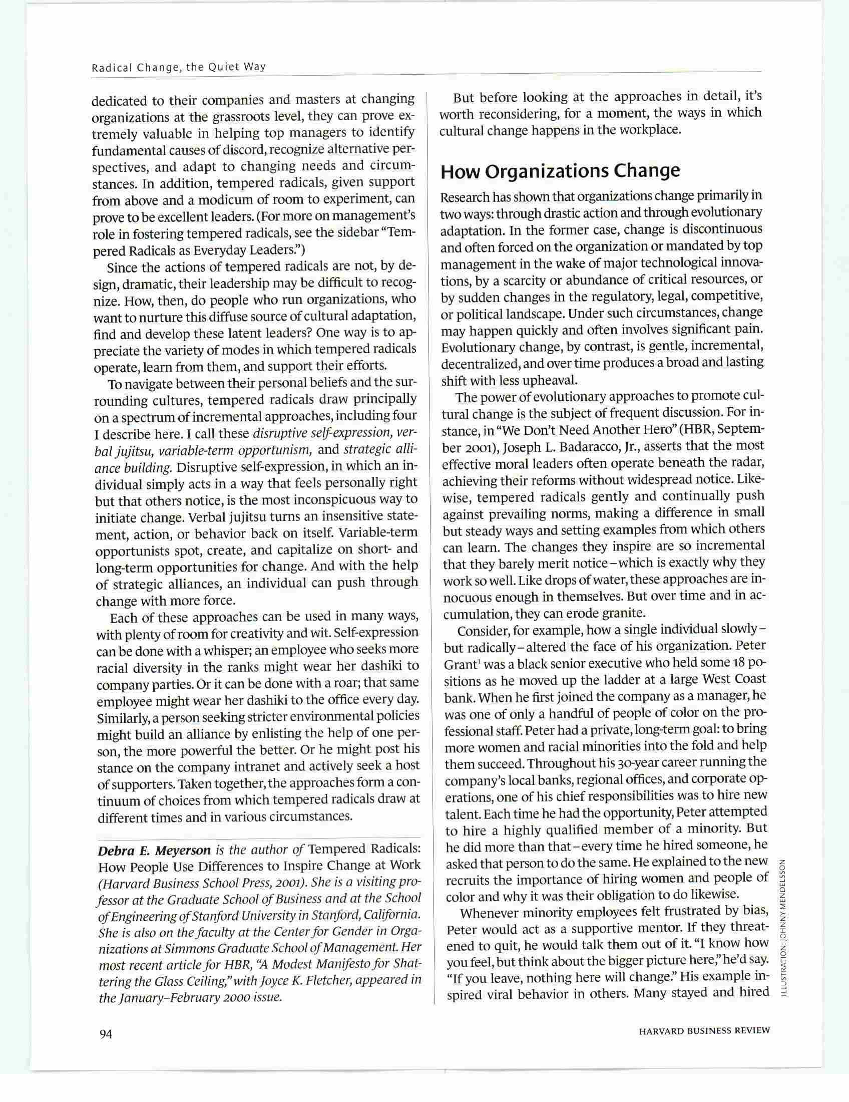 "Radical Change, The Quiet Way," Debra E. Meyerson