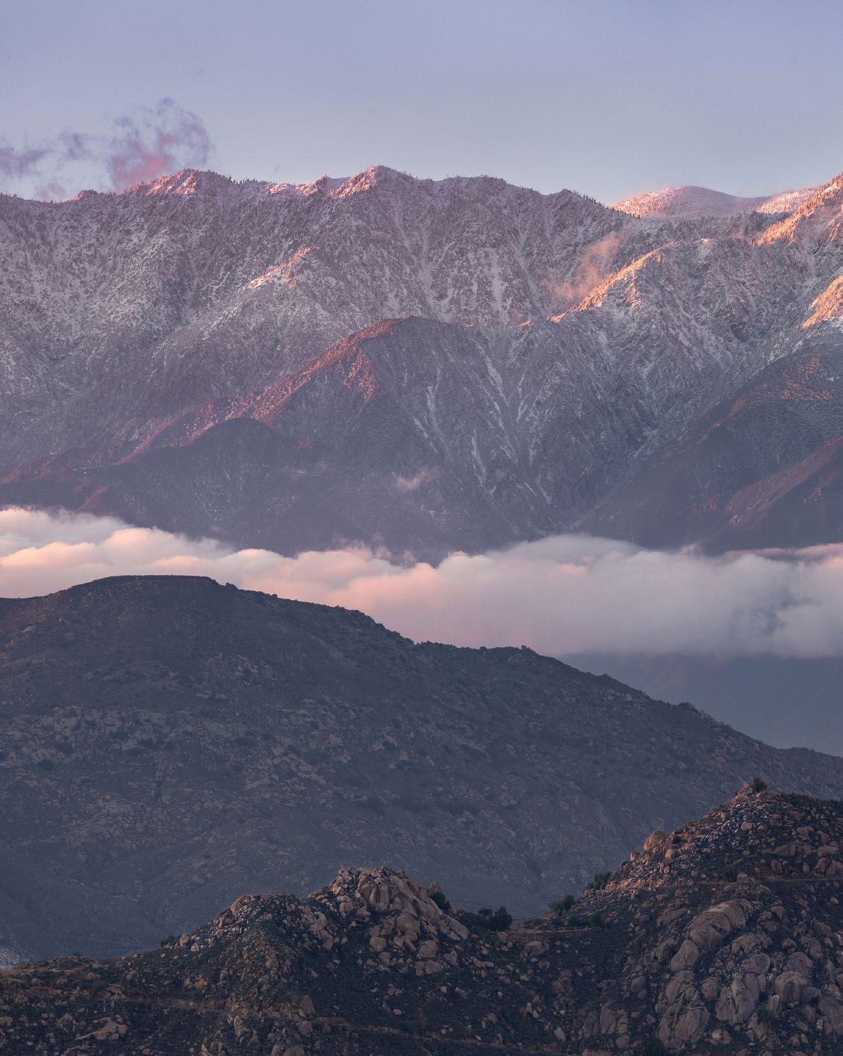 Last light of the day at Cucumonga Peak and Mt. Rubidoux.