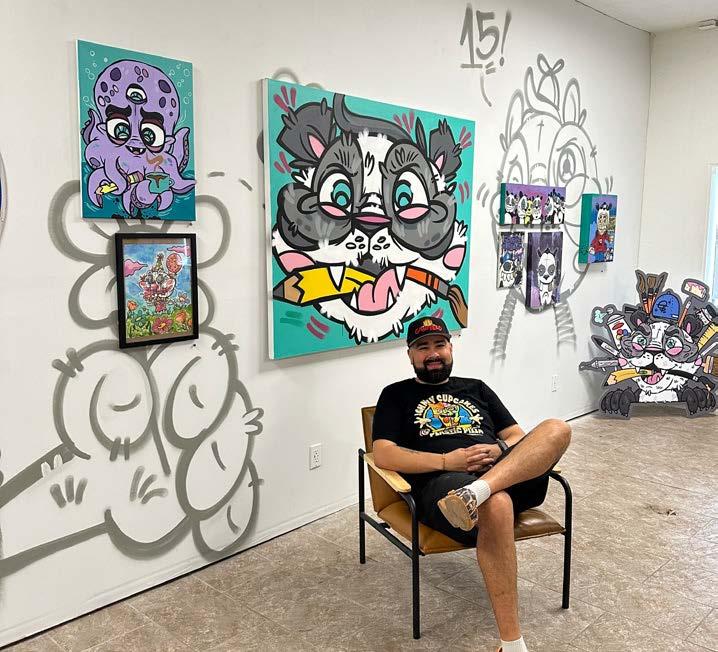 Despite numerous setbacks, Cordova continued to paint and show his work at galleries and exhibitions throughout Southern California. At age 29, he founded the Division 9 Art Gallery in the basement of the Life Arts Building in downtown Riverside in 1999. He named the gallery after a piece of drywall he discovered during construction with the words “Div 9” printed on it. Division 9 became a muchneeded home for local artists to network and showcase their art. It was one of the first galleries of its kind in downtown Riverside and continues to be an essential part of the local art community today.