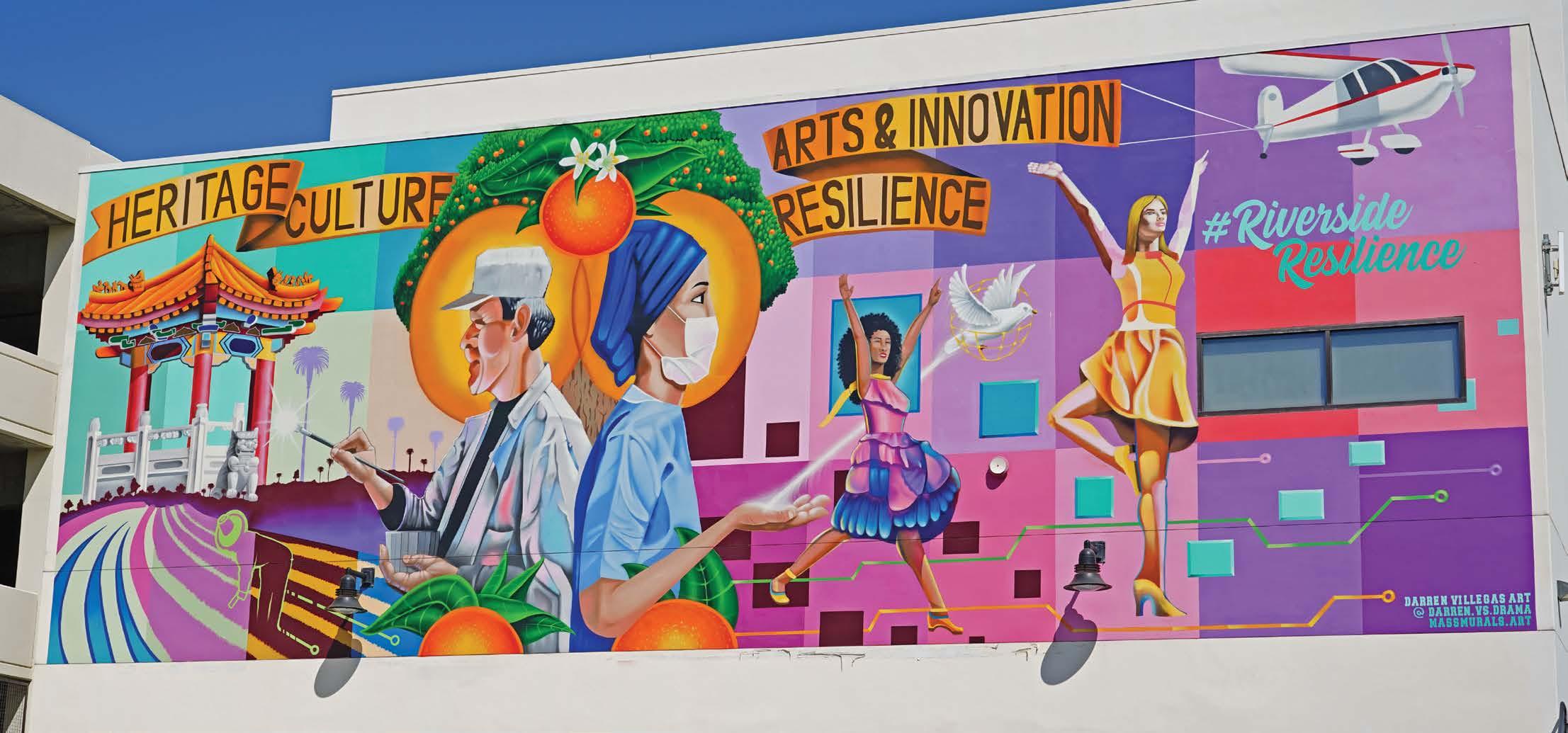 Driving around, you can’t help but notice the amount of murals popping up all over town. Buildings are being steadily transformed into works of art and we are here for it! Public art enriches our urban landscape. It catches our eye and brightens our day. In this issue, we are thrilled to feature the Mural Movement that has helped make Riverside the City of Arts and Innovation.
