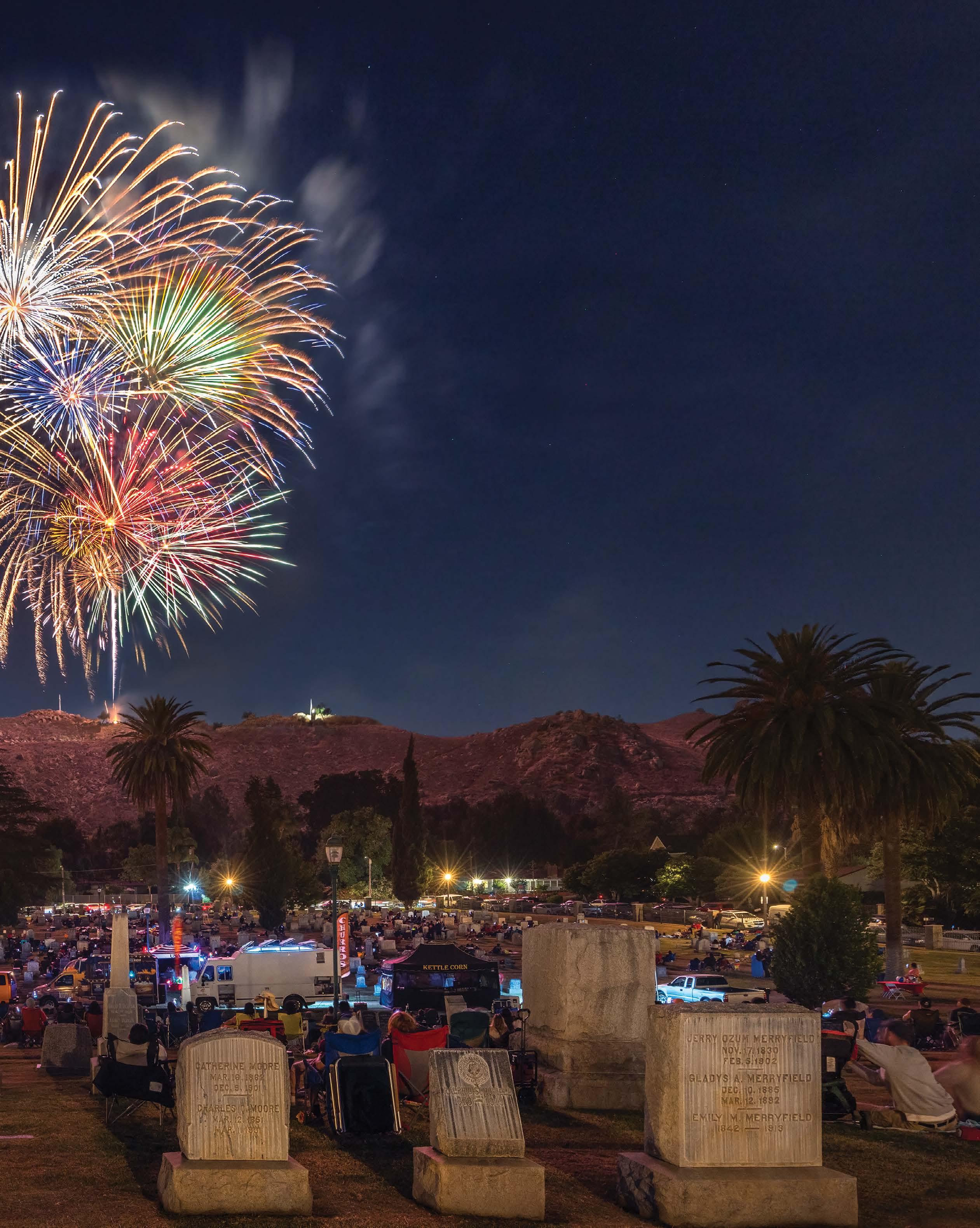 Riverside's favorite 4th of July fireworks show returned this year to Mt. Rubidoux. Some of the best seats in the house were at Evergreen Cemetery. Photo by Julian Jolliffe