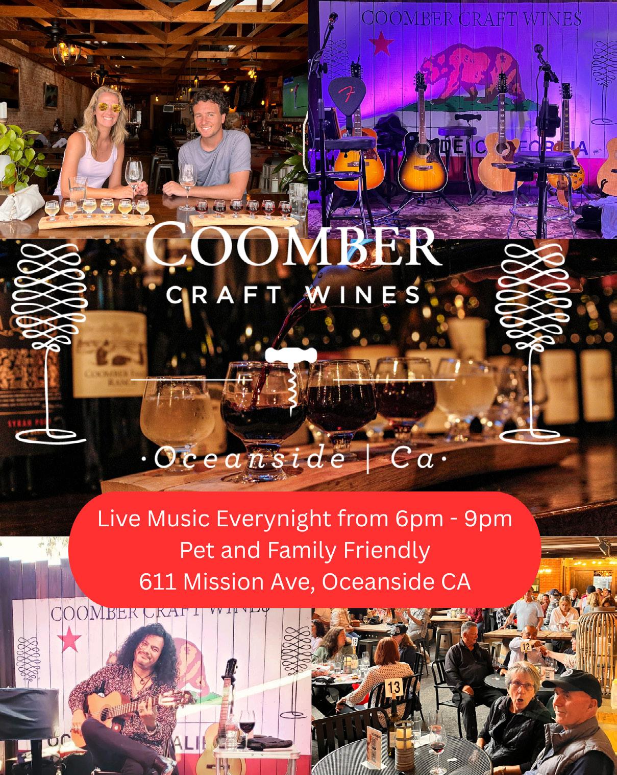 COOMBER CRAFT WINES 611 Mission Ave. (760) 231-8022 coomberwines.com