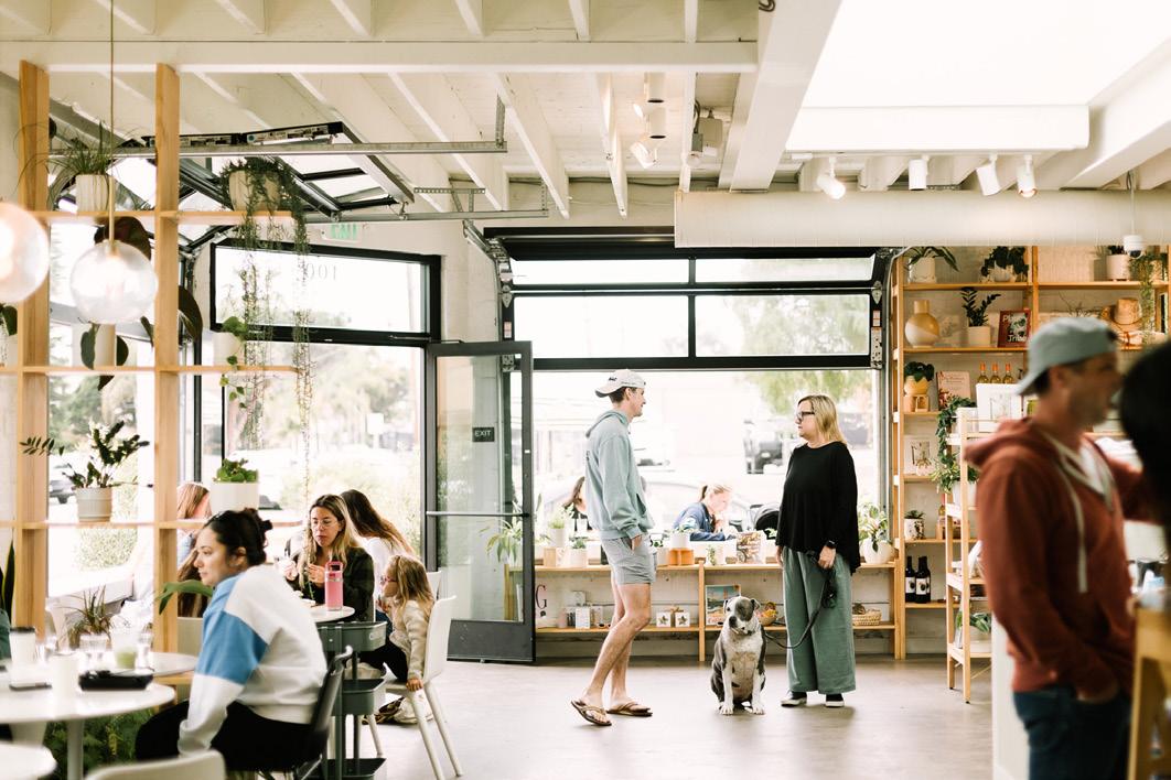 The café itself reflects Ryan and Maria’s personalities: airy and light, with a mix of Scandinavian simplicity, Mediterranean warmth, and Columbian brightness. White exposed beams and seafoam green walls pair with natural woods, splashes of color, and west-facing windows that let in the coastal sun and breeze. It’s clean but never cold, designed as much for lingering as it is for grabbing a quick latte and bagel.