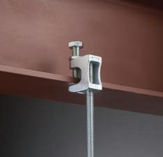 Low-profile clips and clamps that reduces visual impact and provides easy installation in confined ceiling spaces