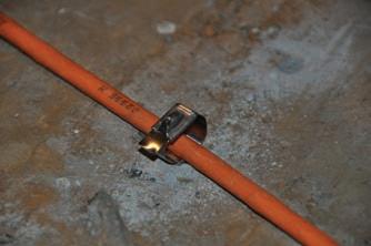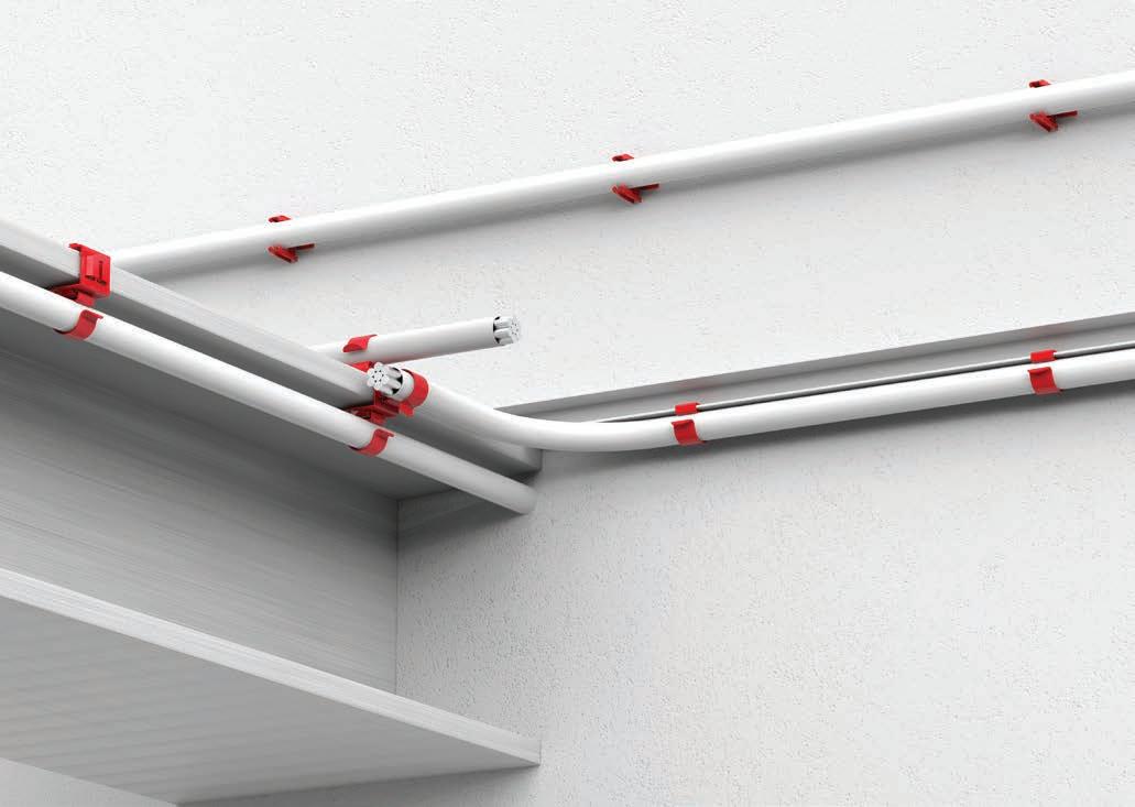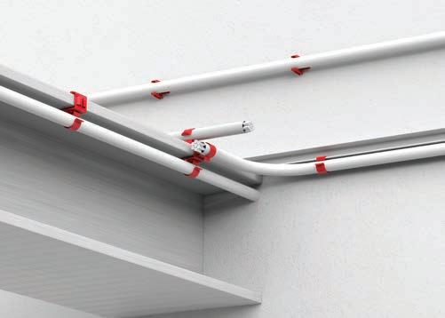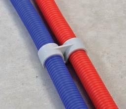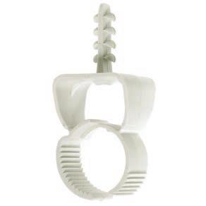 • Hammer in plastic clip to hold 2 pipes/conduit
