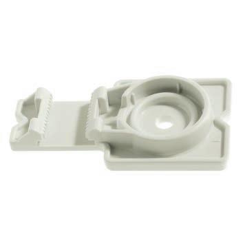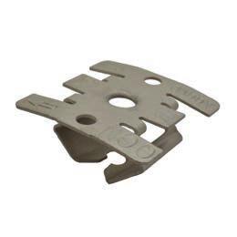 The nVent CADDY Connecting Plate for Nail Gun facilitates the installation of plastic conduit clamps and clips on concrete surfaces using a nail gun. Designed for safe, hands-off installation by clipping onto the nail gun nozzle, it supports up to three plastic conduit clips or clamps with a single attachment.