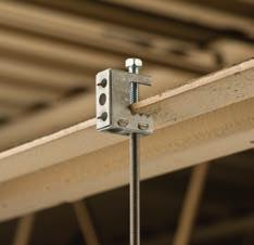 Low-profile clips and clamps that reduces visual impact and provides easy installation in confined ceiling spaces