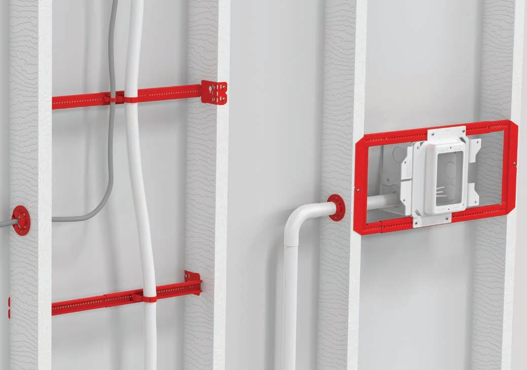 • Improved design with stamped inch markings and pilot holes accelerates precise box conduit mounting between studs