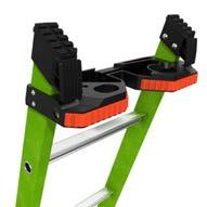 • Innovative top cap features hooks, port holes, slots and grooves to keep your materials within reach while atop the ladder