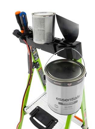 Keep your tools close at hand. The integrated tool tray on the handrail allows you to place your phone, hammer, drill or other materials on the tray for easy access while working.