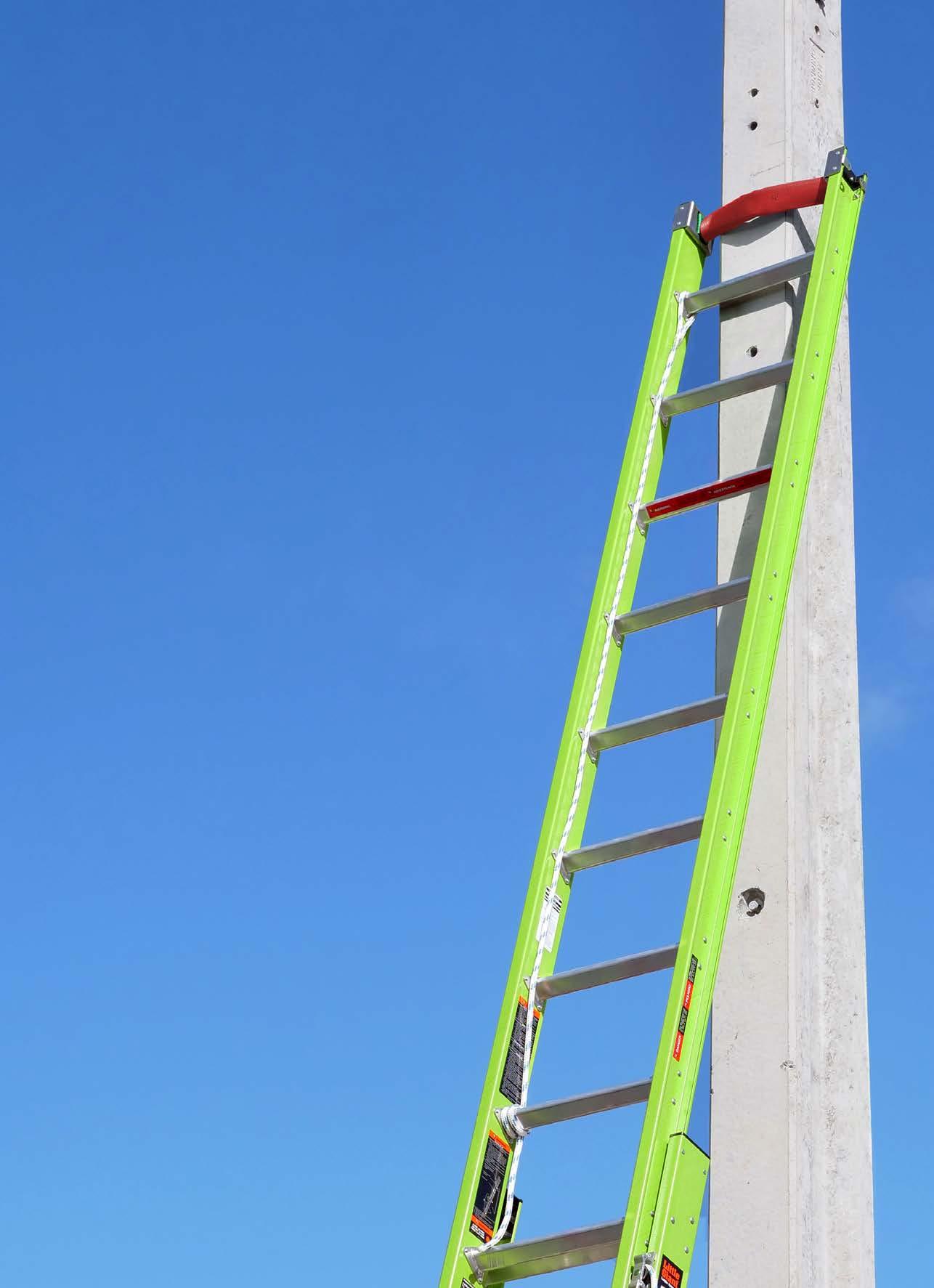 • Tethering system secures ladder to the pole, enabling lone workers to secure the head of their ladder before ascending - included