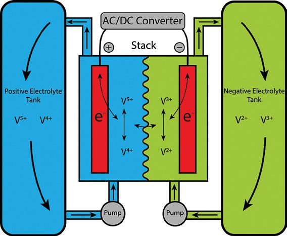 The technology relies on the ability of Vanadium to exist in four different oxidation states (V2+, V3+, V4+, and V5+), each of which holding a different electrical charge.