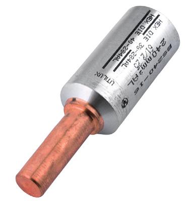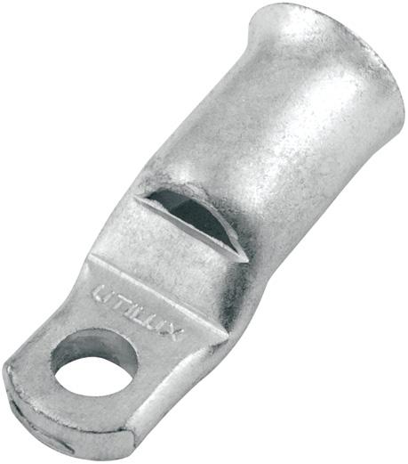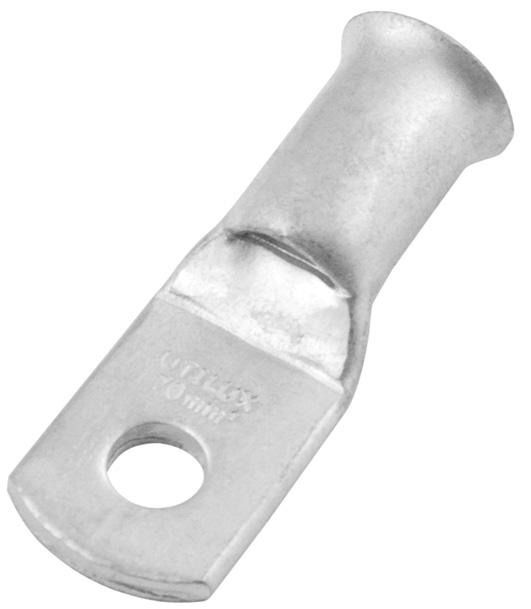The Utilux range of flared Copper lugs has been designed with the barrel entry flared to enable an easy insertion of multi stranded cables (flexible cable). The range of connectors (from 25mm² to 185mm²) will ensure most applications for common flexible cable sizes are covered. Flared Copper lugs are made from seamless Copper tube, electro tin plated and have the cable area clearly marked on the palm of the lug. The inspection window on the barrel provides a check that the cable has been fully inserted. The flared lugs can be crimped with the standard range of Utilux tooling and hexagonal dies.