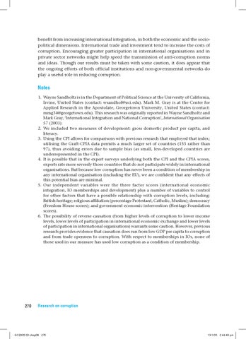benefit from increasing international integration, in both the economic and the sociopolitical dimensions. International trade and investment tend to increase the costs of corruption. Encouraging greater participation in international organisations and in private sector networks might help speed the transmission of anti-corruption norms and ideas. Though our results must be taken with some caution, it does appear that the ongoing efforts of both official institutions and non-governmental networks do play a useful role in reducing corruption.