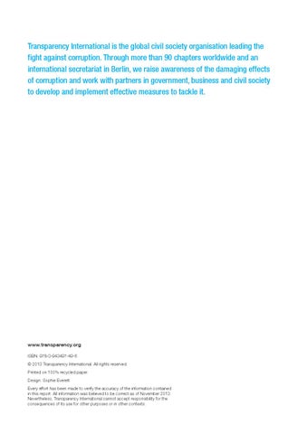 www.transparency.org ISBN: 978-3-943497-49-6 Š 2013 Transparency International. All rights reserved. Printed on 100% recycled paper. Design: Sophie Everett Every effort has been made to verify the accuracy of the information contained in this report. All information was believed to be correct as of November 2013. Nevertheless, Transparency International cannot accept responsibility for the consequences of its use for other purposes or in other contexts.