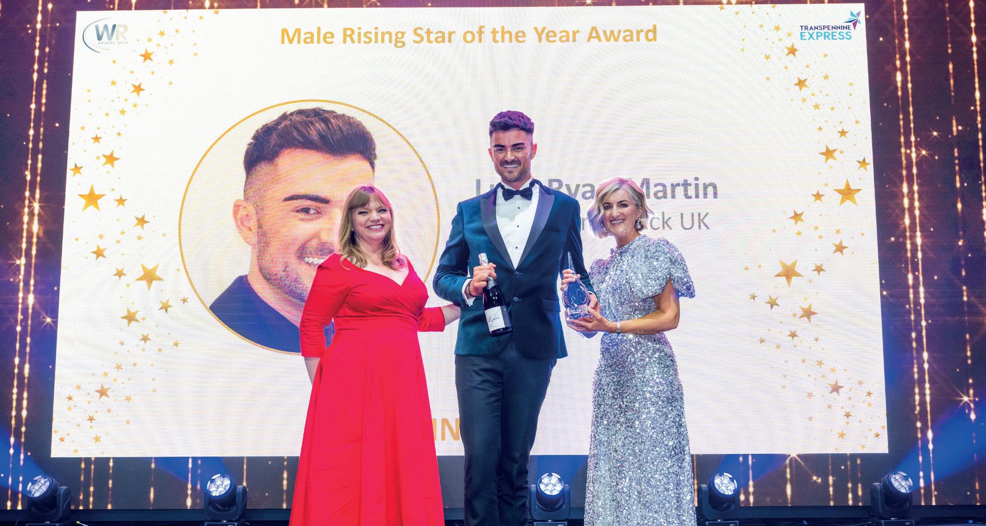Kathryn O’Brien, Customer Experience and Transformation Director (pictured right) presents the TPE sponsored Male Rising Star of the Year award to Luke Ryan Martin (centre), Supply Chain Activation Manager at CAF Rolling Stock UK at the Women in Rail awards last week.