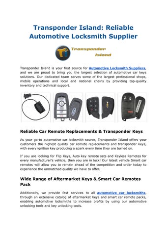 Transponder Island is a leading U.S. automotive locksmith supplier offering wholesale keys, remotes, transponder keys, smart keys, flip keys, and essential locksmith tools for reliable, professional results.