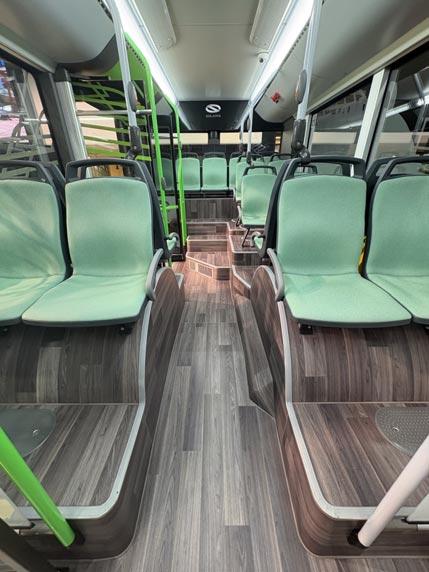 Bussen har op til 12 sæder, DK-lift og som noget nyt: kryds-X seler på højre sæderække. Det gør det nemmere for chaufføren at hjælpe passageren – og giver mulighed for dobbelt fastgørelse for ekstra sikkerhed.