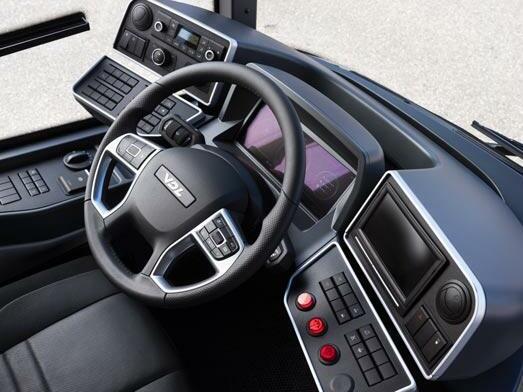 Førerpladsen svarer til førerpladser i så mange andre busser. Knapper, rat, arme til blinklys og viskere med mere. Jesper Mathiesen peger på, at MAN's designere har gjort meget ud af genkendeligheden, så buschaufførerne let kan finde sig til rette - og finde betjeningsknapper og håndtag - når de skifter fra en bus til en anden.