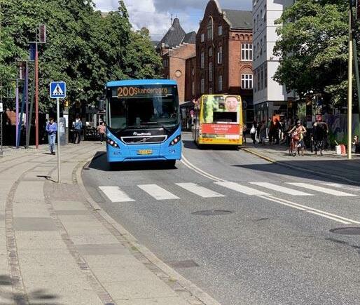 Efter turen til Beder og Malling går turen tilbage til Aarhus. Helt ind til Park Allé i Midtbyen, der er en central gade for byens busser. Her blander vi os med gule dieselbusser fra både MAN og Solaris - og et par el-busser fra Volvo.