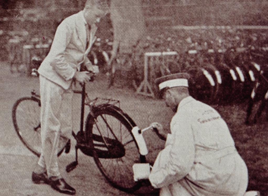 Større Færdselssikkerheds første aktion den 8. september 1935 var at male cyklernes bagskærme hvide for at beskytte cyklister mod påkørsel bagfra i mørke. (foto: Rådet for Sikker Trafik).