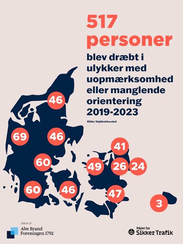 Otte ud af ti, der dør i ulykker på vejene i Danmark, dør på grund af uopmærksomhed eller manglende orientering, viser de seneste, officielle ulykkestal fra Vejdirektoratet. Budskabet i kampagnen er, at ulykkerne ikke kun rammer den enkelte trafikant, der er uopmærksom, men også mange andre.