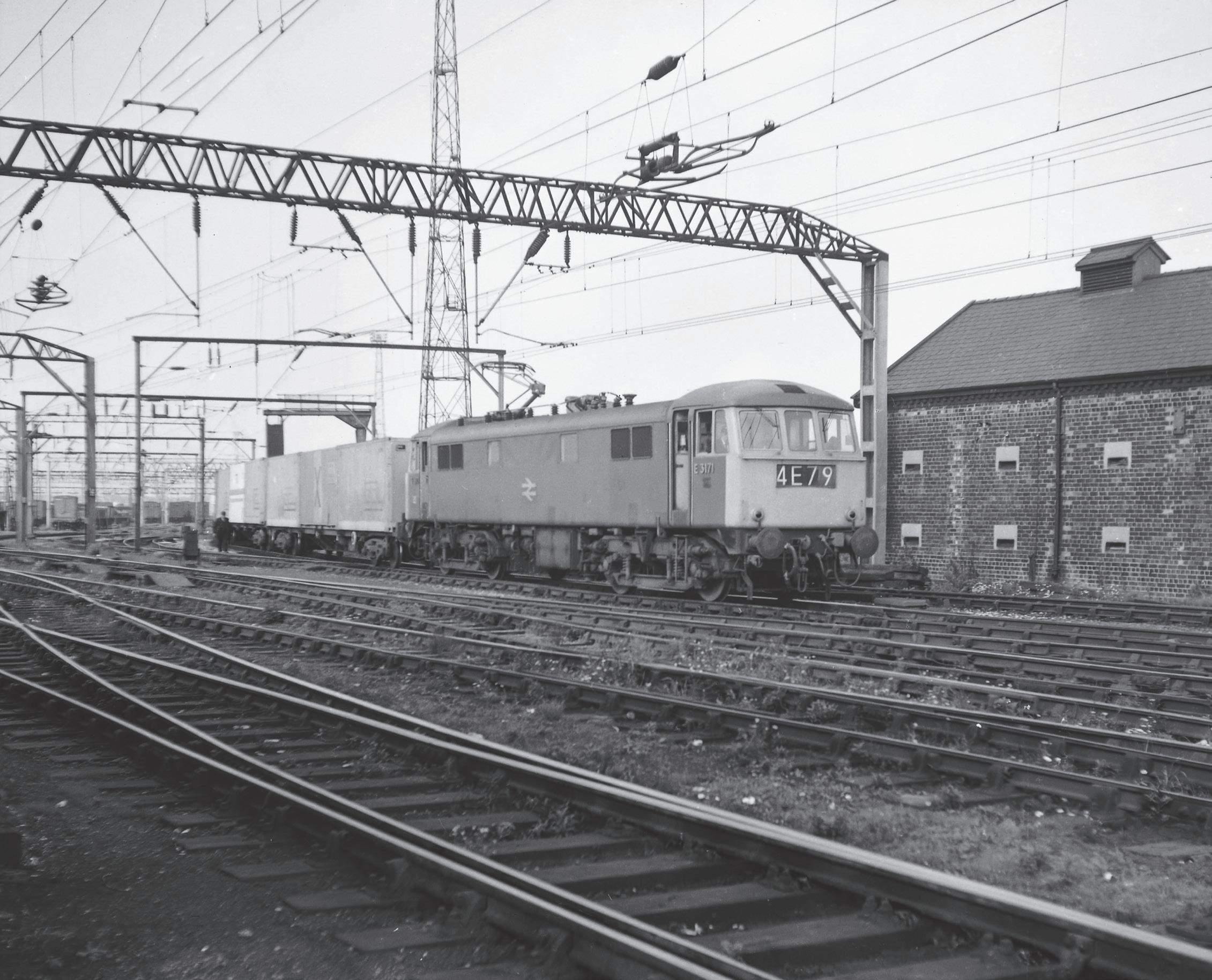 service, a football special in May 1965, examples on pick-up goods trains, views of them working with the ex-LMS 40-ton hoppers used on services to Stonebridge Park and record shots of E3173 when it was fitted experimentally with a streamlined fibreglass nose cone to assist BR’s research into aerodynamics and highspeed running for their new Advanced Passenger Train and High Speed Train. In all, for any Class, let alone one confined to the electrified lines of BR, they had a remarkably varied work schedule and turned up on some of the most unlikeliest of workings and we look forward to seeing the best of them.