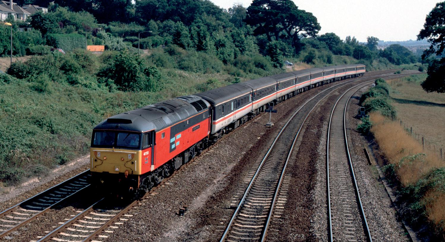 ▲ Working wrong line is Network Southeast liveried 50017 Royal Oak on 1A77, the 16:10 Paignton to Paddington service on 20 September 1986. The loco had arrived at the south west resort earlier that day having worked west on 1C38, the 11:35 London Paddington to Paignton service. (Bernard Mills)
