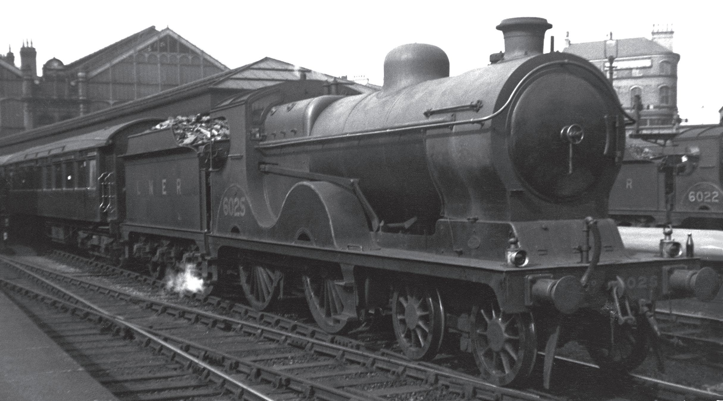 Opposite:1934.OnthismistydayatNottinghamVictoriastation,ex-GCRClass11E (LNERClassD10)’Director’4-4-0No5429 PrinceHenry iswaitingtodepartwitha passengerworking.ConstructedatGortonWorksduring1913,shewasoneofonly tenexamplesoftheclassandwouldbecomeNo62650withBritishRailwaysandbe withdrawnduring1954.Initiallynamed SirAlexanderHenderson until1917when shewouldbecome SirDouglasHaig untilthe1920swhensheacquiredherfinal name.(GB86)