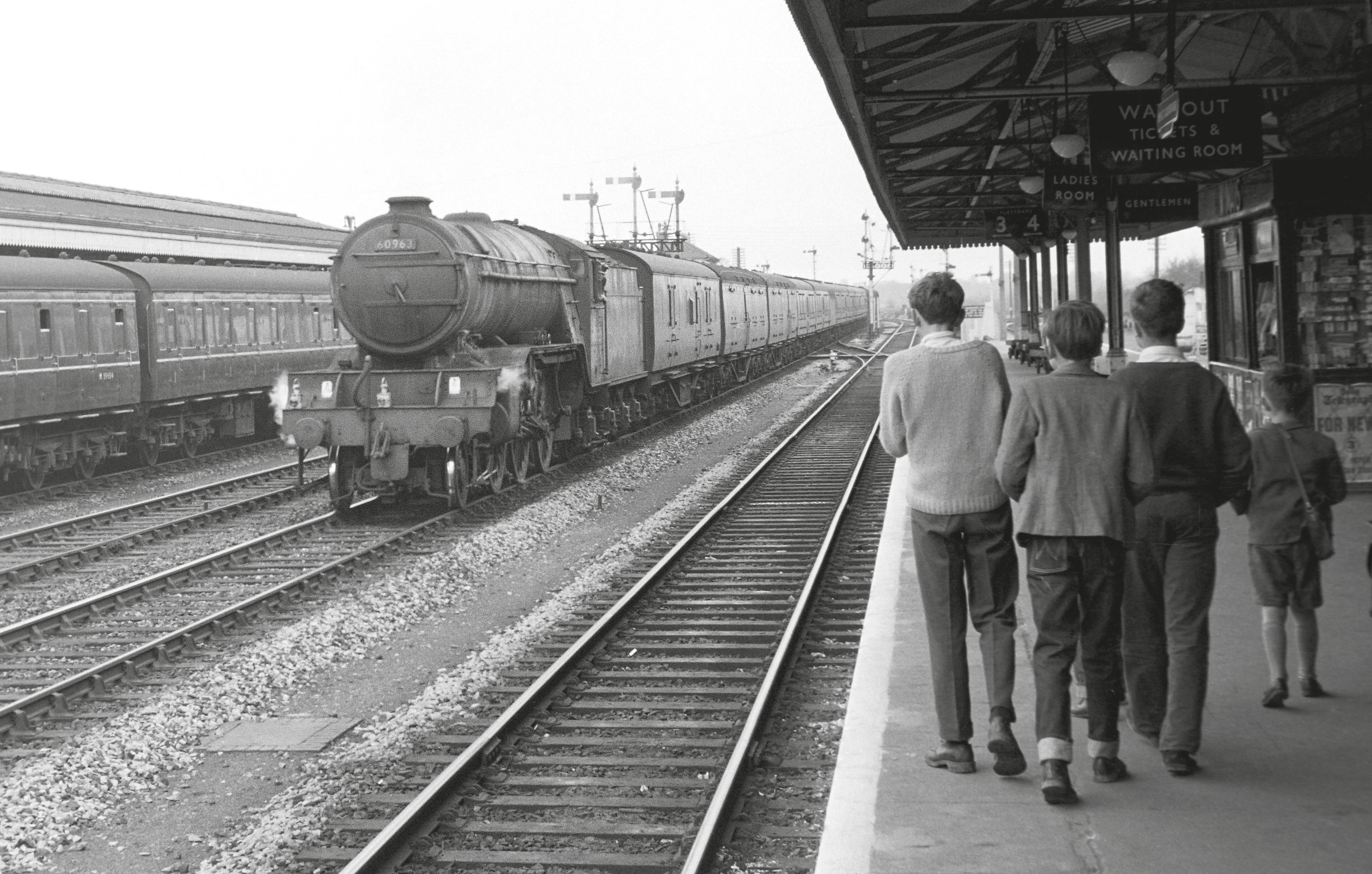 Ref48.AtPrincesRisboroughon18April1964,agaggleof‘spotteroiks’mayhave‘copped’ Gresley V22-6-2No.60963asitpassedwithanUpClassC parcelsservice.Althoughbereftofashedplate,recordsshowtheenginewasbasedatYorkatthisdateandremainedthereuntilwithdrawninJune1965. TotheleftofthetrainisoneoftheMarylebone-basedDerby4-carDMUsets(Class115)whichwereintroducedonthelineinJanuary1961.Bythestartof thenewJune1962timetable,theseunitshaddisplacedsteampoweronallthesuburbanservicestoandfromAylesbury,HighWycombeandPrincess Risboroughandweredestinedtocontinueunchallengedinthisroleforoverfortyyears. S2642.