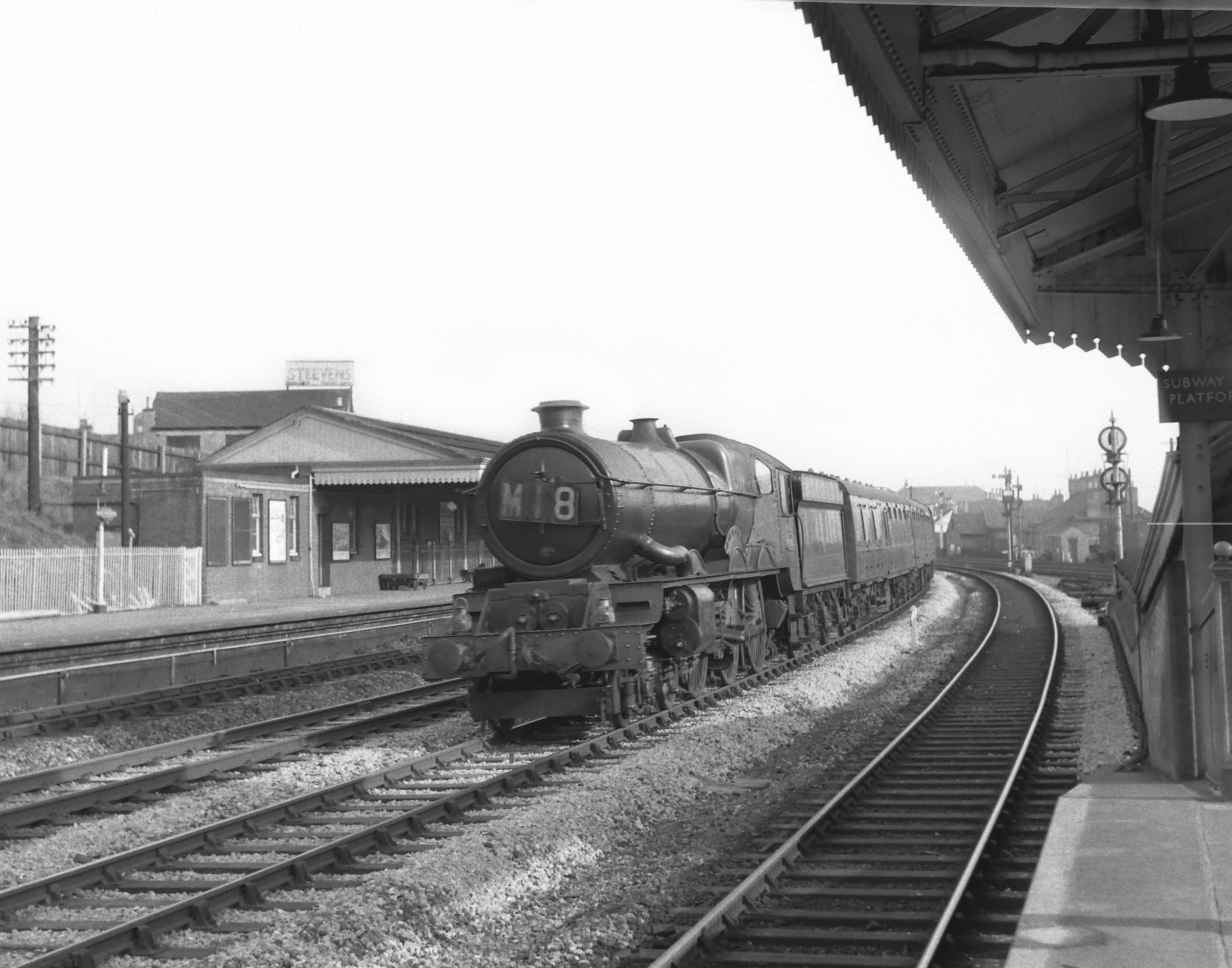 FrontCoverRef1.On7July1962,No.6012KingEdwardVIofStaffordRoadshedeasesaBirkenheadservicethroughtheseriesofreversecurvesatHigh Wycombewhichdictatedamaximumspeedof35mph.ThetrainisseentothewestofthestationhavingpassedundertheacutelyangledAmershamHill roadbridgeandwiththehugebrickretainingwallservingasanunmistakeablebackdrop.6012,arecenttransfereefromOldOakCommon,hadacquireda doublechimneyinFebruary1958,butonlyhadalittleovertwomonthsleftbeforewithdrawaloccurredinSeptemberafteramassingalmosttwomillion miles. M20-6