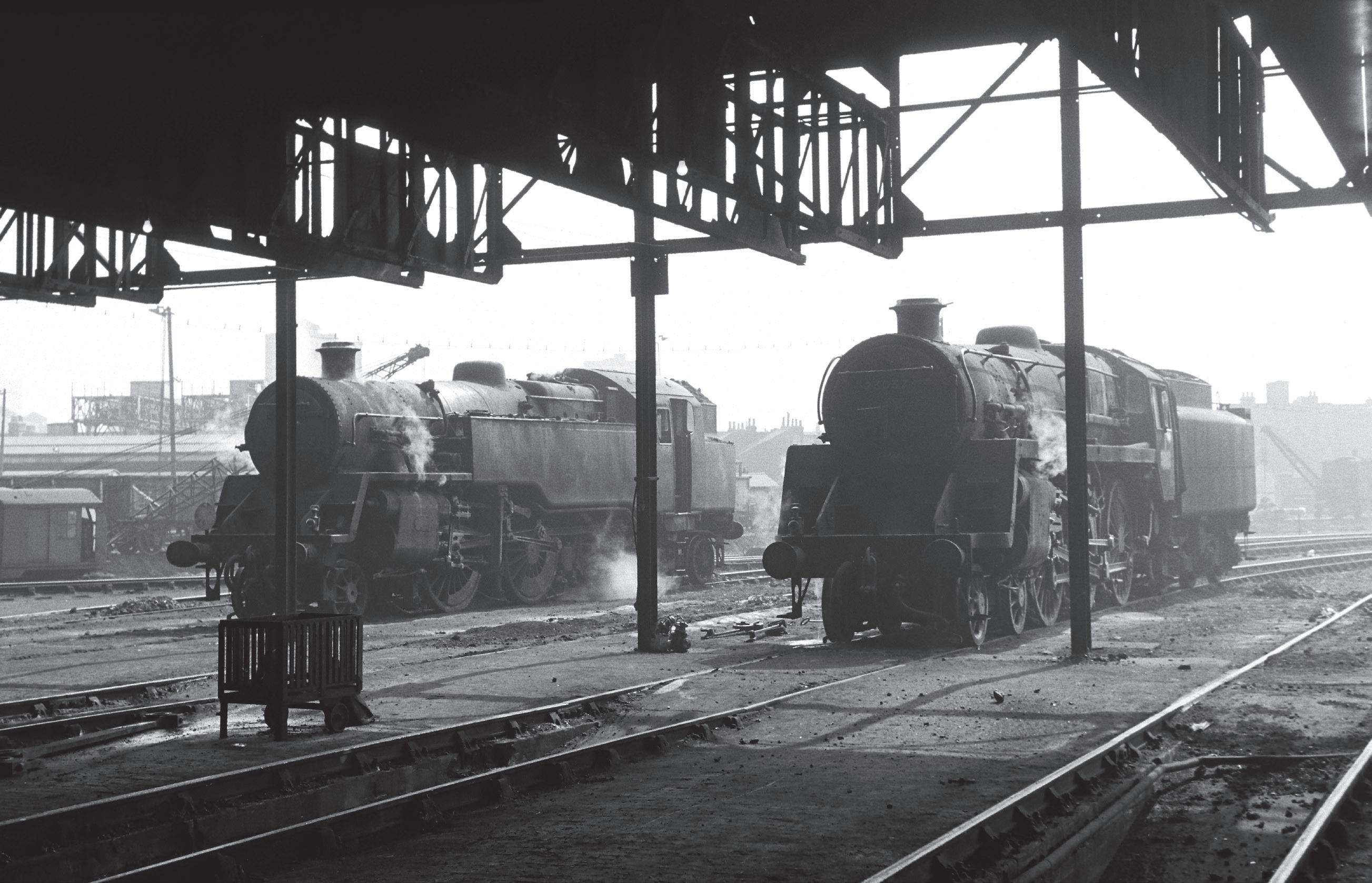 Right: Ash clearance was a perpetual job, and this poor chap could be at the task for the rest of his life! There were mechanical grabs to assist in the process, but they could not reach everywhere; good old manual labour was the last resort. No wonder recruitment was almost impossible by the mid-1960s, and one of the best reasons to finish with steam. By that date, nobody wanted to work under these conditions. P. Hocquard 3398