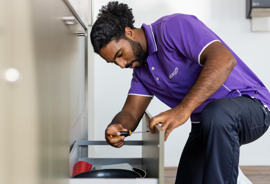 Nieuwe taken vragen om nieuwe vaardigheden. Daarom ontwikkelde Vebego met een partner een mbo 1- en mbo 2-opleiding tot facilitair zorgondersteuner, met aanvullende modules gericht op de zorg, zoals slikproblematiek. Ruim veertig collega’s volgden al een opleiding. Daarnaast heeft Vebego een Topacademie voor jongeren met een afstand tot de arbeidsmarkt. “Samen met gemeenten, roc’s en onze klanten begeleiden we deze jongeren richting een diploma én een baan, onder meer in de zorg”, zegt Cynthia. “Onze eigen collega’s leiden we op tot stagebegeleiders. Zo geven we praktisch geschoolden nieuwe kansen.”