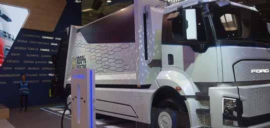 a intrattenere gli appassionati del mondo dei camion con novità e motivi di attrazione. Alla sua seconda presen za, dopo aver debuttato lo scorso anno, Ford Trucks ha mostrato – in antepri ma nazionale – il primo truck 100% elettrico, centrando così ufficialmente l’ingresso in questo segmento. Sguar do al presente e testa rivolta al futuro: non solo novità, allo stand si è parla to anche di promesse mantenute e sfi de future, confermando l’impegno di “condividere il carico” (come il pay-off
