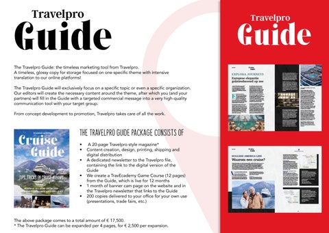 * The Travelpro Guide can be expanded per 4 pages, for € 2,500 per expansion.
