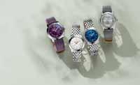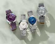 models introduce a delicate seven-row Chevron bracelet, motherof-pearl dials, and fluid diamond-set bezels.